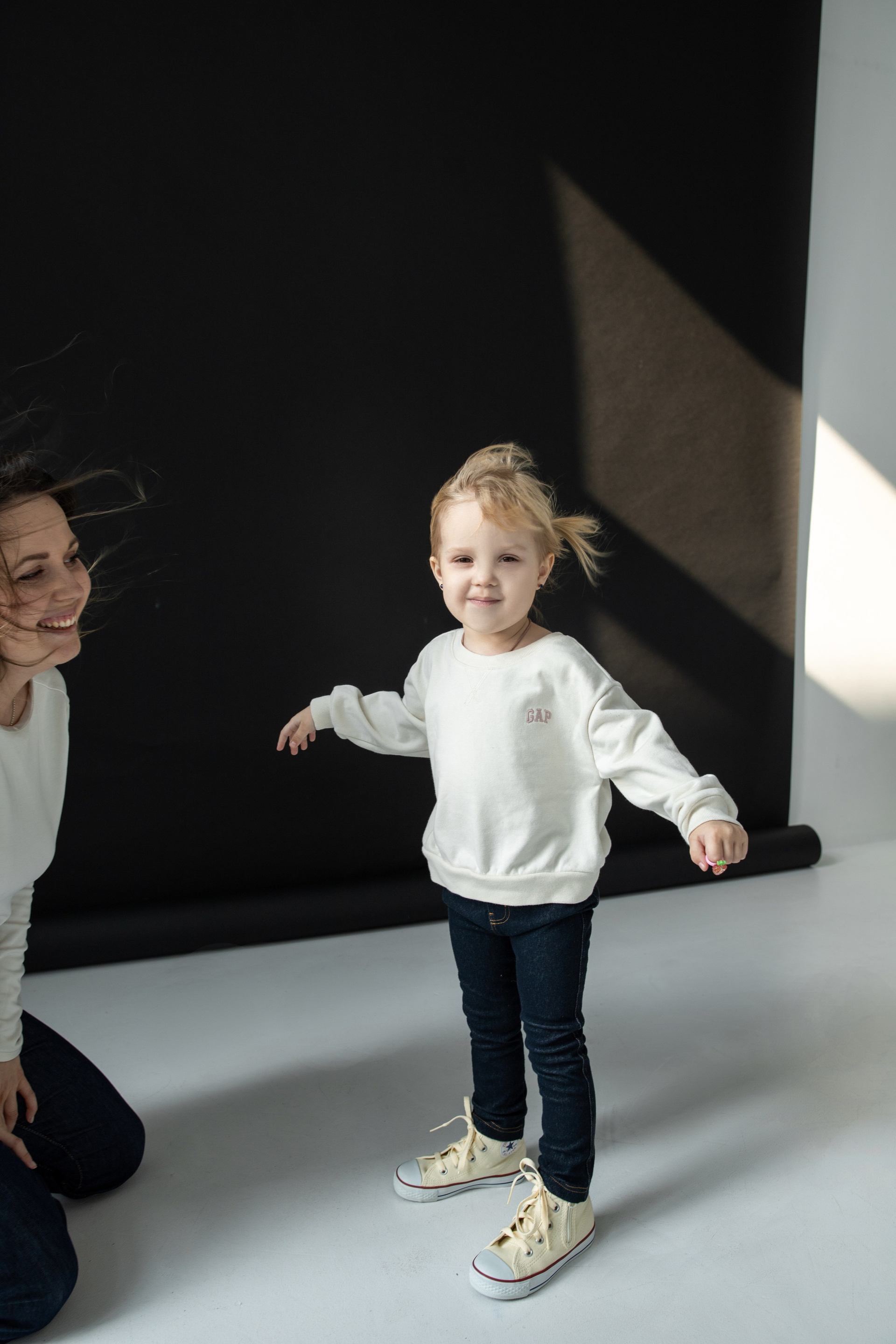 Лида давно хотела сделать фотоссесию с дочей Алисой и обратилась ко мне. Хотелось простых и живых эмоций. Конечно Лида волновалась как будет вести себя Алиса (ей три года), ведь ранее было непросто ее уговорить что-то одеть и тем более сделать с ней фотоссесию. Подобрали образ из гардероба Лиды и для Алисы (чтоб нравилось именно Алисе). Просторная и минималистская студия как раз то что нужно для данной истории.